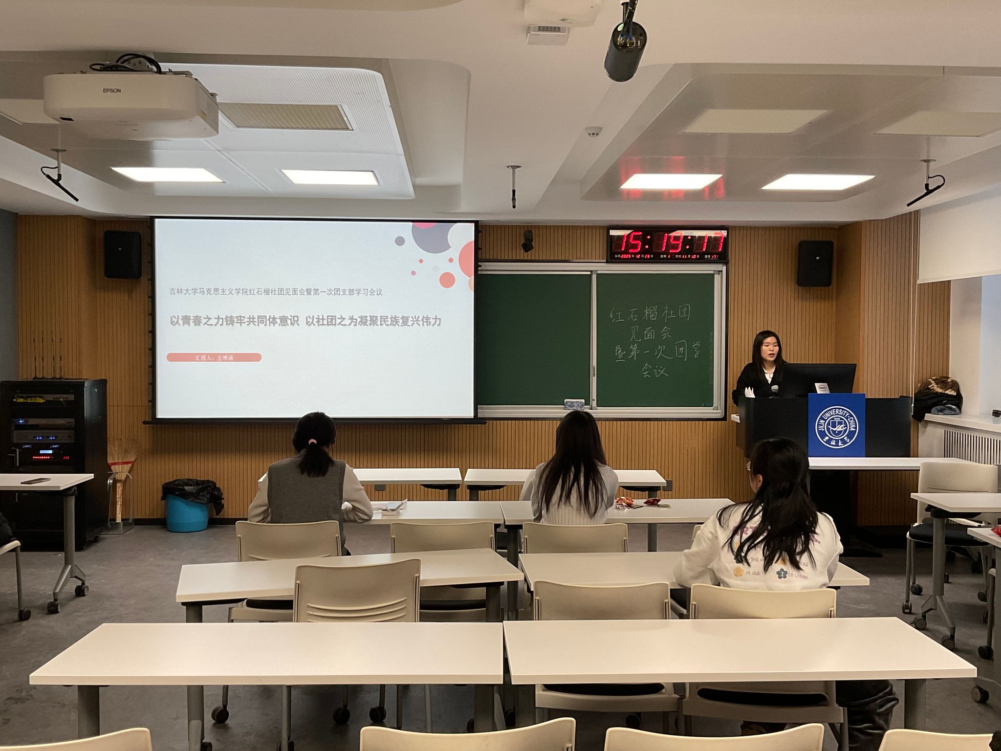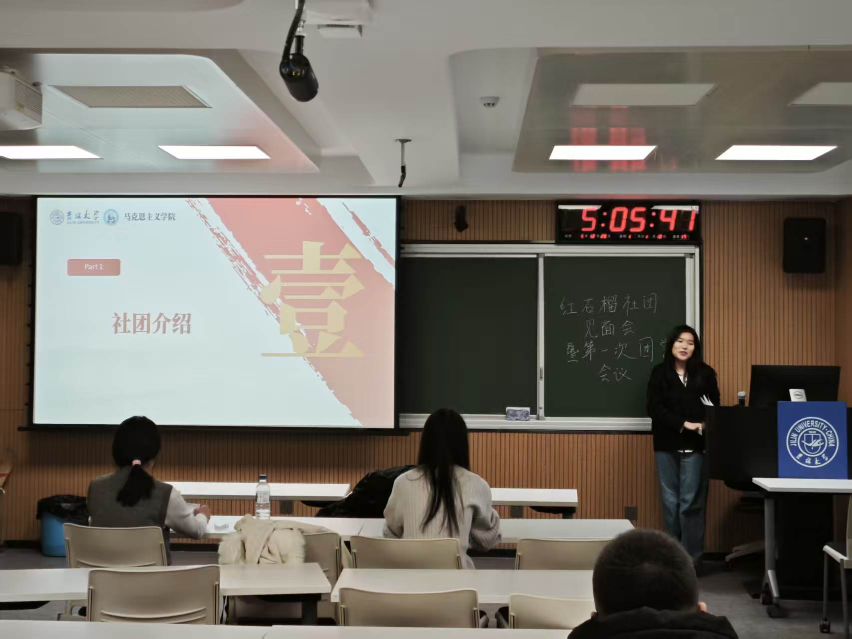 会议伊始,主席王博涵从社团的产生、发展和未来规划三个方面展开系统介绍。红石榴社团是由多民族成员组成的思想政治类的社团,始终以习近平新时代中国特色社会主义思想为指引,将铸牢中华民族共同体意识作为核心宗旨,通过理论学习与实践活动相结合的方式,持续提升社团活跃度与凝聚力。未来计划联合其他社团开展民俗博物馆研习等活动,依托文化分享、学术交流、公益实践等形式,深化各民族成员的交流融合,推动社团多元一体建设走深走实。