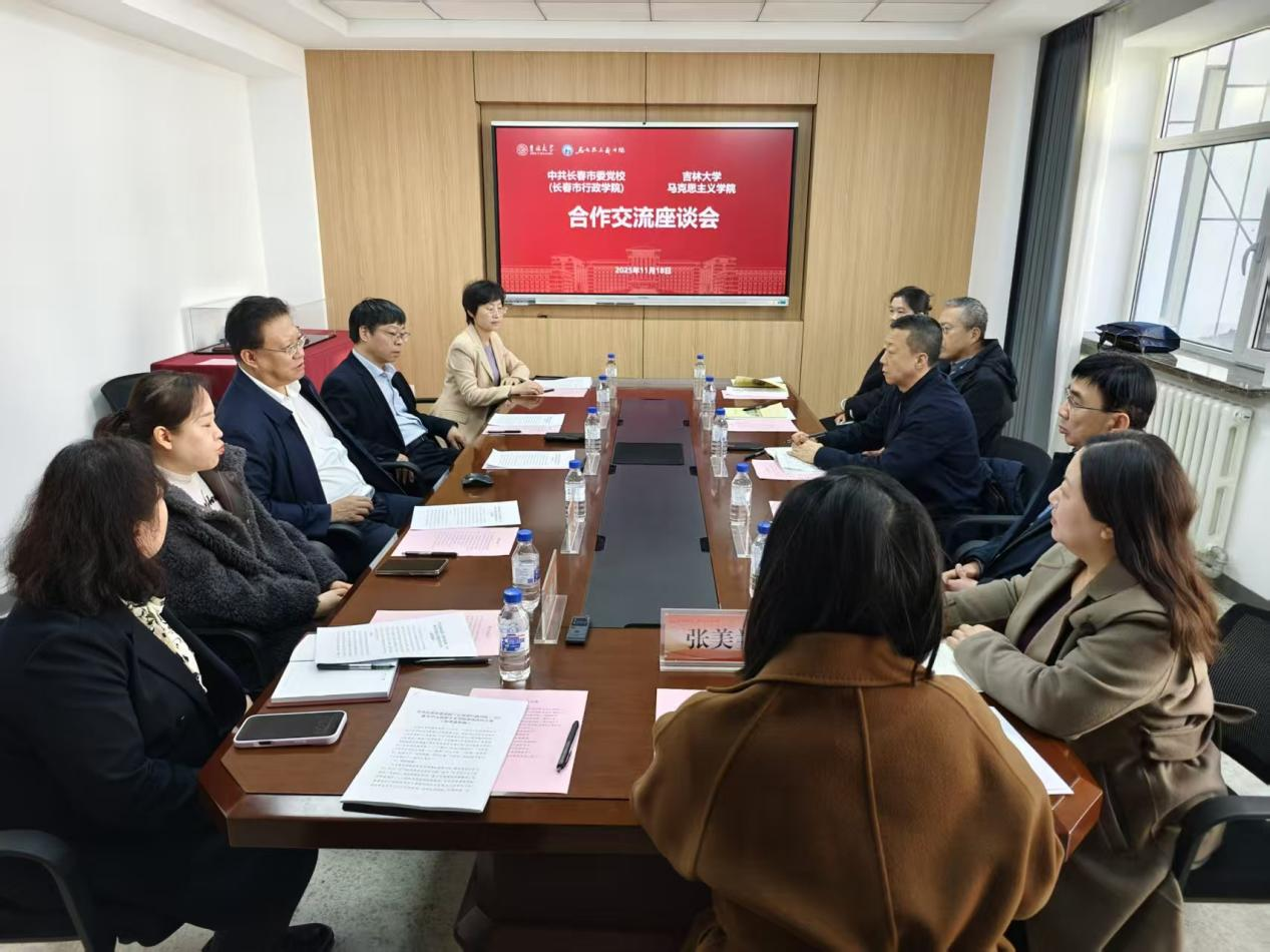 开展合作交流座谈。中共长春市委党校(长春市行政学院)副校长(副院长)郝峰、张宝忠,一级调研员马春凯,人事处处长董巍,人事处副处长黄思玉,党建党史教研部日常工作负责人张美兰;P站