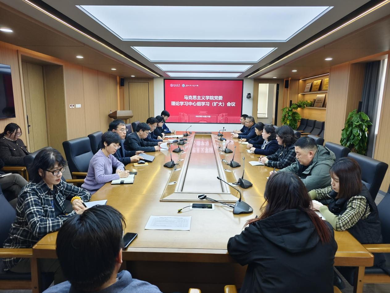 2025年10月27日,P站 在吕振羽楼317会议室召开党委理论学习中心组学习(扩大)会议,专题学习党的二十届四中全会精神。会议由学院党委书记钟新主持,学院党委理论学习中心组成员、教工党支部书记、行政人员参加会议。